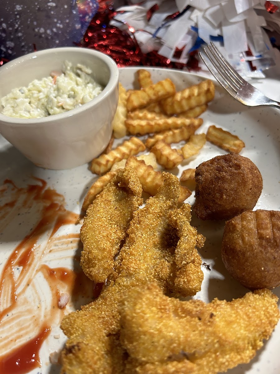 Very nice little store and a good resturant. Food was satisfactory. Fish filets were kind of small and the tartar tasted a little much like dill pickles for me. The hamburger steak was great but the rice was sort of bland. Pork Chop was tender but it said it has a brown sugar so we thought it should have had sort of a sweet glaze but that was not the case. Normal chop. Kids meals definitely were about what you would expect from a school cafeteria. Place was very clean and the staff was on point. The live entertainment was great. We were there on 7/23 so I am not sure of the fellas name was but he was great.